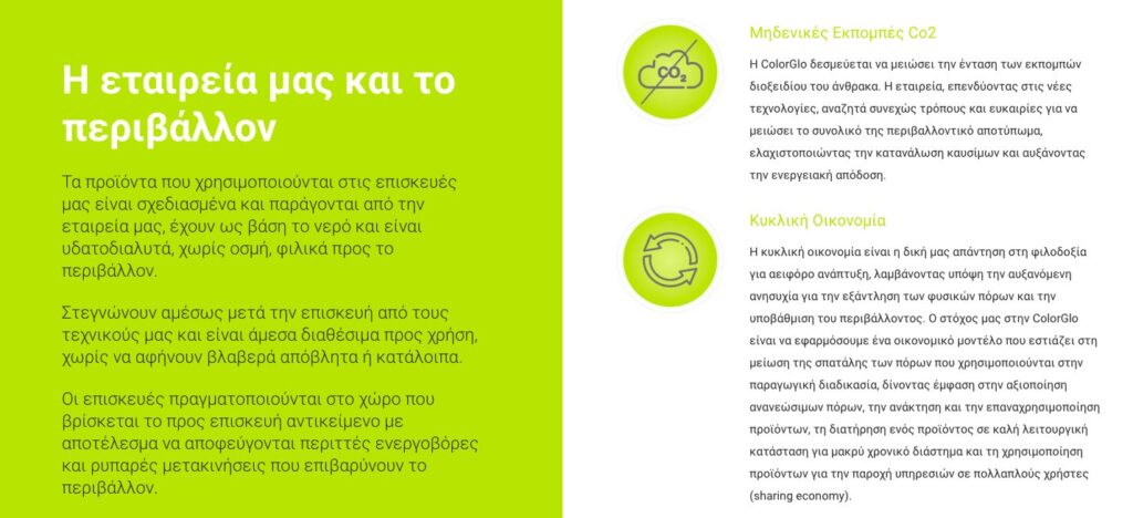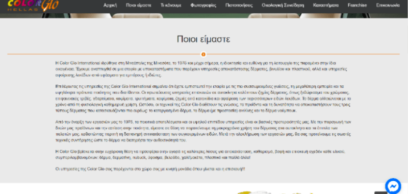 Just Online undertook the recreation of the site colorglo.gr and its promotion through Social Media ads & Google Ads. The site was rebuilt to, not only refresh the company’s image by better reflecting the results of Color Glo’s services but also so as to be friendlier to navigation, faster and increase the number of calls for appointments.